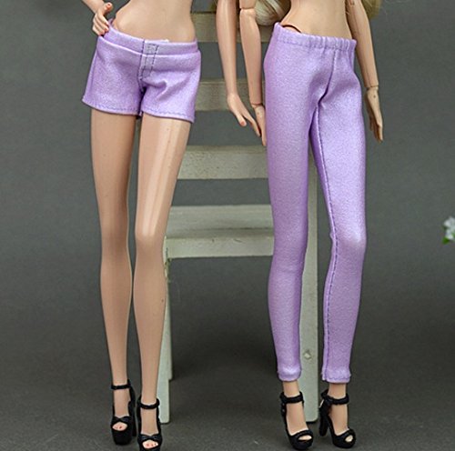 Fashion Elastic Purple Leather Bottoms Pants Trousers for Barbie Dolls best gift 2Pcs