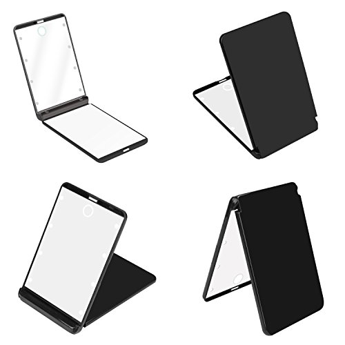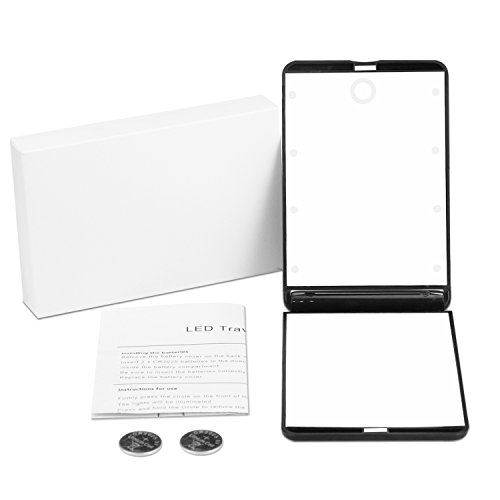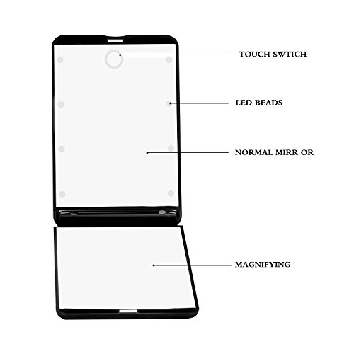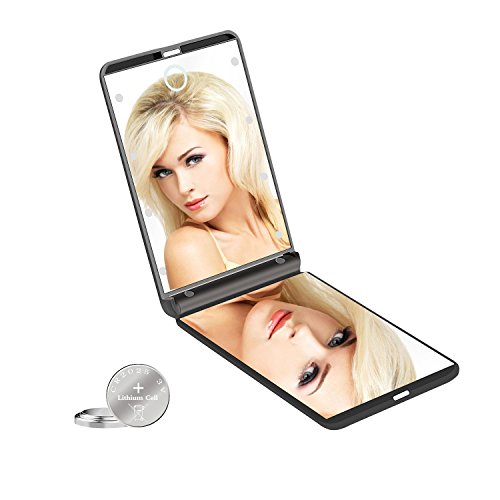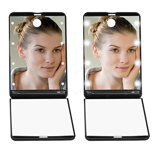 LED Makeup Compact Vanity Mirror with 8 Dimmable Led Lights UBTKEY Touch Switch 2x Magnification Compact Lighted Mirror Battery Powered Travel Makeup Mirror