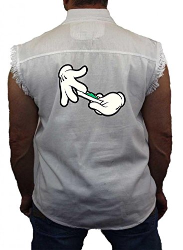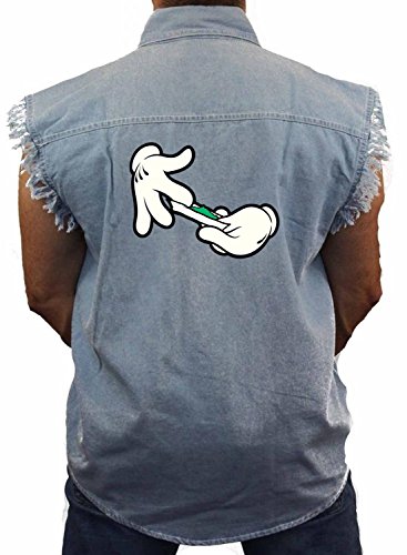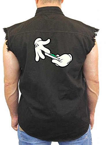 (Juiceclouds)/Men/Outerwear/DIRECT FROM USA/Juiceclouds | Sleeveless Denim Ves t Cartoon Weed Rolling Hands M-5XL