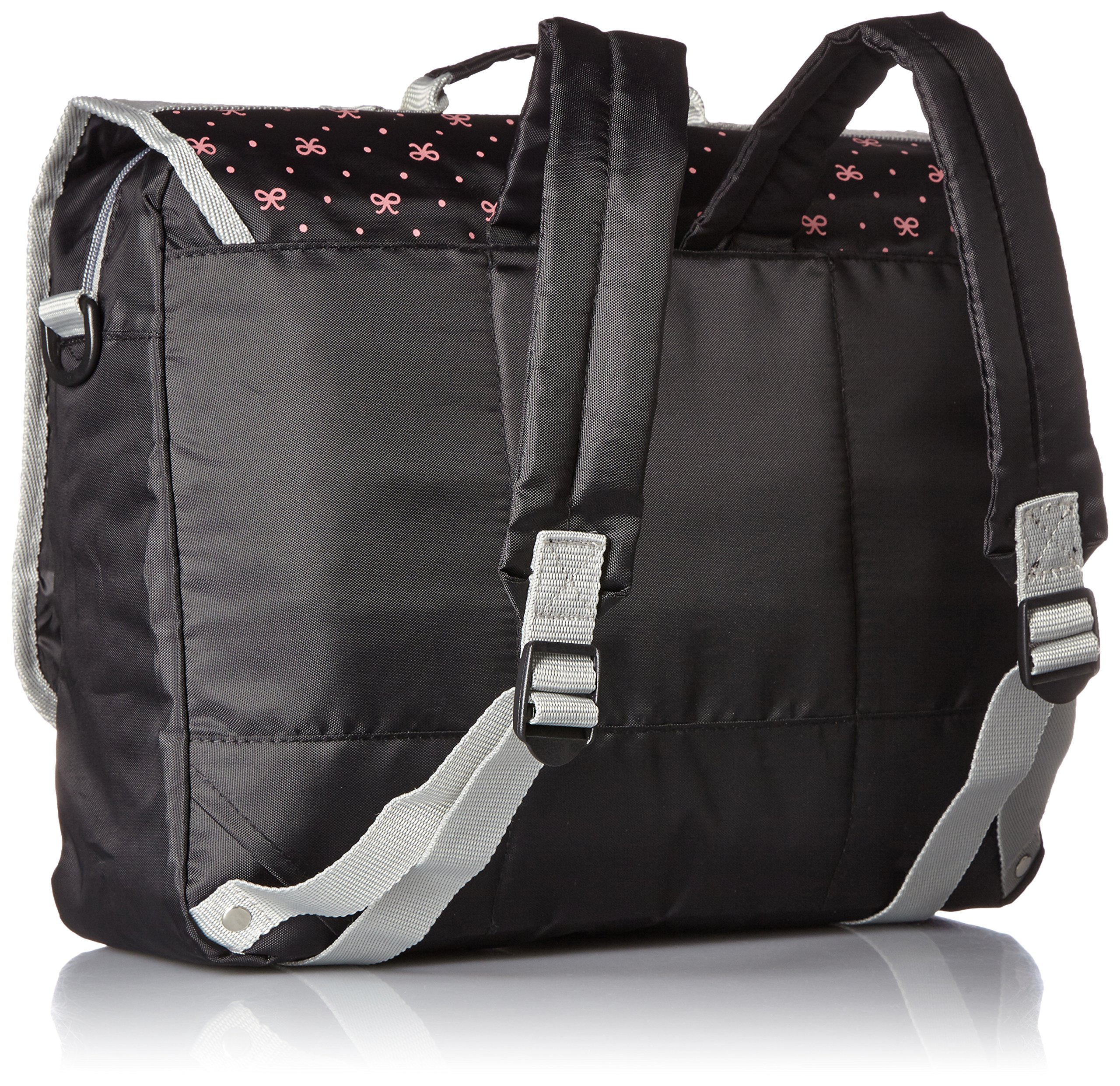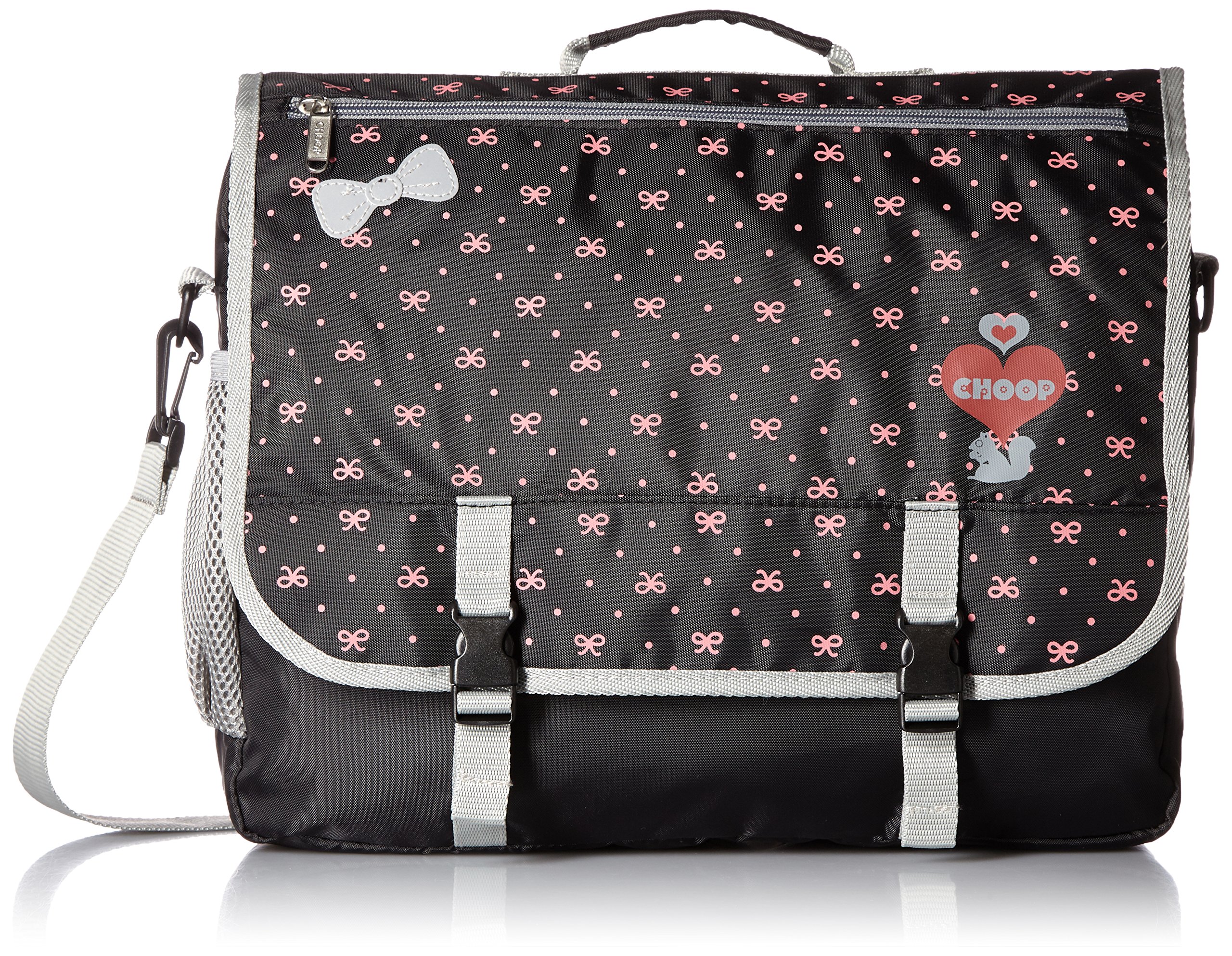 It incorporates heart and flower motifs, peaceful and pop girls bag brand.