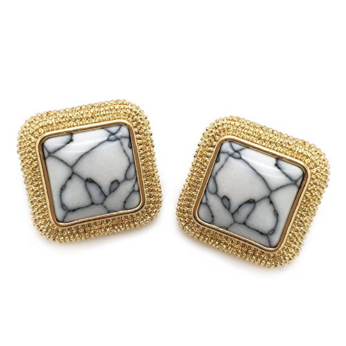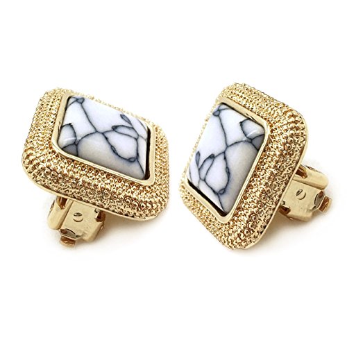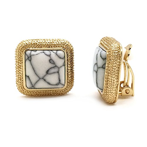 Made of alloy base metal, these classic square shaped earrings are showcasing white resin with beadings detailings. Clip on backings secured these earrings with ease and comfort. For non pierced ears. These fashion clip on earrings will make the perfect choice for your special someone for Valentine's gift, Christmas gift, Mothers day gift, Birthday gift, Anniversary Gift, or Bridal party gifts.Feature