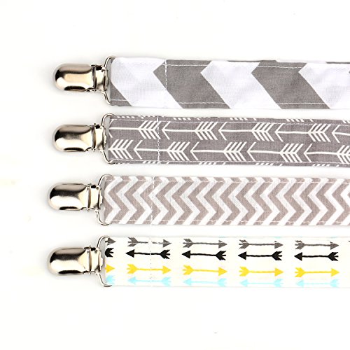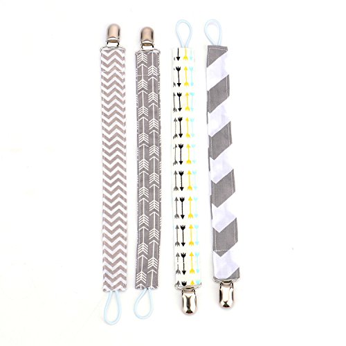 -. Binding : Baby Product -. Brand : Tosnail -. Color : Grey -. Feature : Functional - Keep your little one from dropping or losing their pacifier ever again. Clips easily attach to clothing or baby bibs and stay in place. You can also attach teething toys or rings. / Modern Designs - Stylish unisex patterns. Modern and neutral colors for both baby boys and girls to compliment all those cute little outfits. / High Quality- Well made and sturdy design your little won't be able to pull off. Clip is highly durable and won't damage your baby's clothes. / Perfect Baby Shower Gifts - Moms love these pacifier clips. BPA Free, Phthalate Free, Latex Free, Lead Free / Size: 12" L (including the metal clip & elastic loop ) x 1" W -. IsAdultProduct : 0 -. Label : Tosnail -. Manufacturer : Tosnail -. Model : T-PacifierClips-4pcs -. MPN : T-PacifierClips-4pcs -. PartNumber : T-PacifierClips-4pcs -. ProductGroup : Baby Product -. ProductTypeName : BABY_PRODUCT -. Publisher : Tosnail -. Studio : Tosnail -. Title : Tosnail 4 Pack Pacifier Clips - Modern Design for Boys and Girls - Great Pacifier / Teething Ring Holder - Unique Baby Shower Gifts