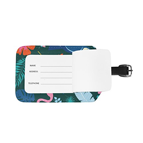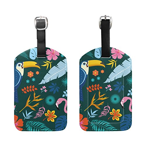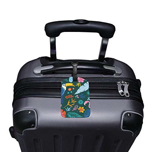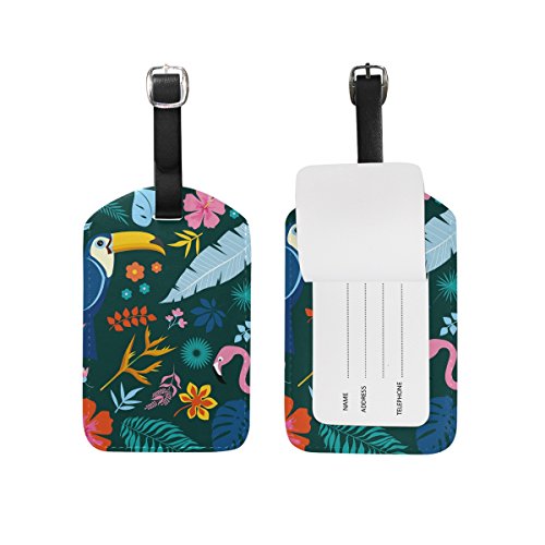 (YZGO)/Accessories/Luggage, Bags Travel/DIRECT FROM USA/YZGO Pink Flamingos Toucan And Tropical Leaves PU Leather Luggage Tags Bag Label Tag Travel Acc...