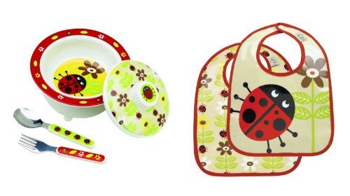 -. Title : Sugarbooger Covered Bowl, Silverware, and 2 Bibs Set-Ladybug