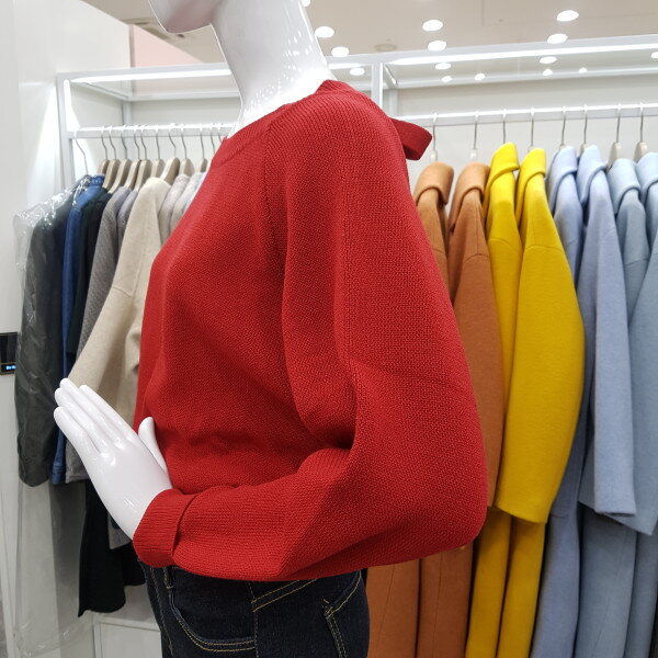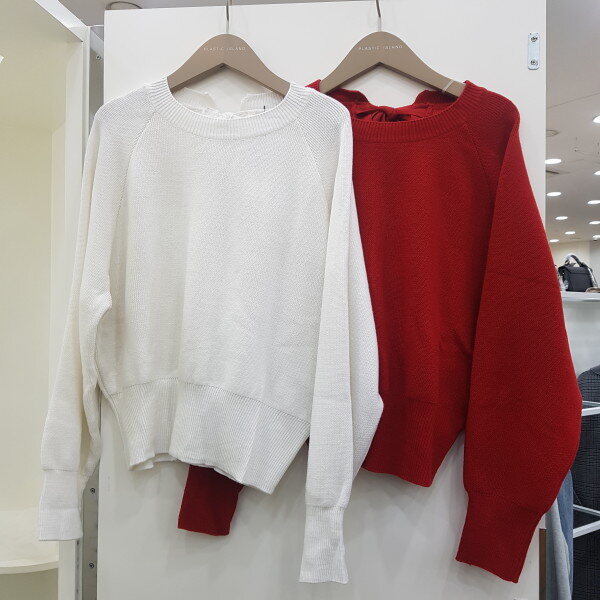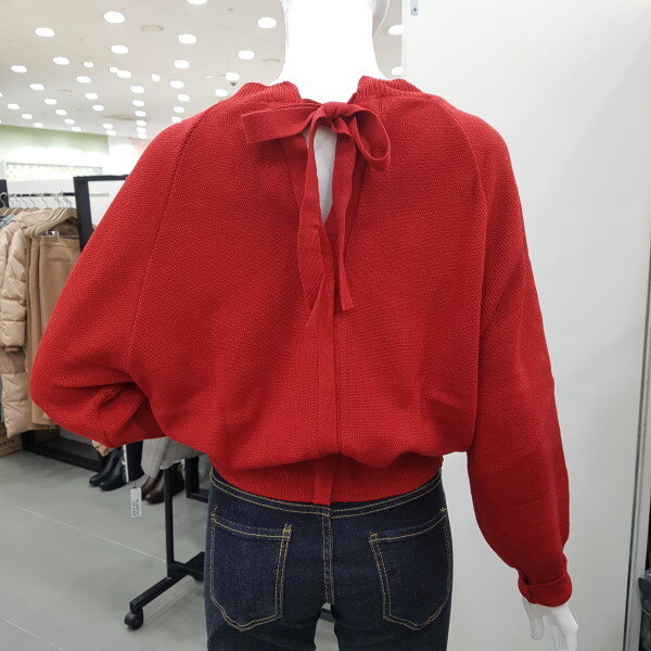 뒷트임리본니트예요^^허리에서잡아주는스타일이라 라인감을 살려주고 등쪽에 살짝트임이잇어 끈으로 표현가능한 반전니트예요^^