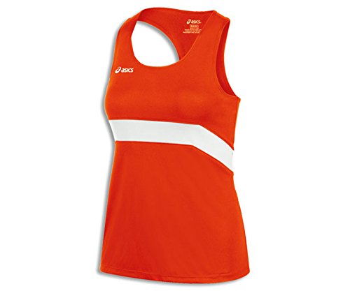 ASICS WOMENS BREAK THROUGH SINGLET, ORANGE/WHITE, MEDIUM