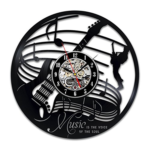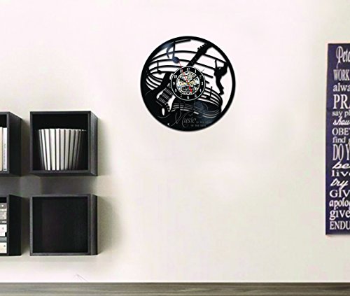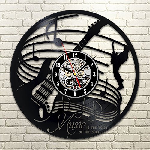 -. Feature : PLEASANT SURPRISE - Imagine the look on your friend's face when they open the box and find this awesome vinyl record clock inside. You don't need anything else when you can get this wonderful clock that's 12 inches in diameter, has a sticker clock face and unique guitar watch mens design! / UNIQUE GUITAR THEMED GIFTS - At our store you can find the variety of the guitar unusual gifts: guitar teacher gifts and guitar shaped gifts for any occasion. Or just surprise someone without any special reason with the whole guitar player kit decor! / SHOW YOUR CARE - This guitar attachment clock makes an original present for your friends and family, it shows your knowledge about their hobbies and interest in guitar akustik items, it shows your love and care for them through this well-chosen clock with the guitar for dummies for the real guitar avengers. / SILENT & EASY TO USE: This wall clock has a silent mechanism - finally you can get rid of the ticking sound in your home. Another advantage of this guitar welsh clock is that it has a hook on the back, so you don't have to puzzle over how to hang this guitar rack wall mounted! / GIFTS SEARCH PROBLEMS ARE OVER! - You've already found the perfect guitar ornaments for men! Finally, you can just choose the design with the guitar eraser or guitar quilt cover you need, click Add to cart and get a great gift delivered directly to the doorstep!