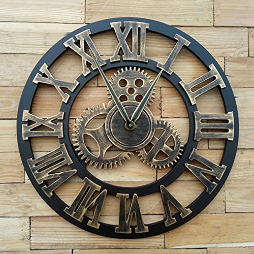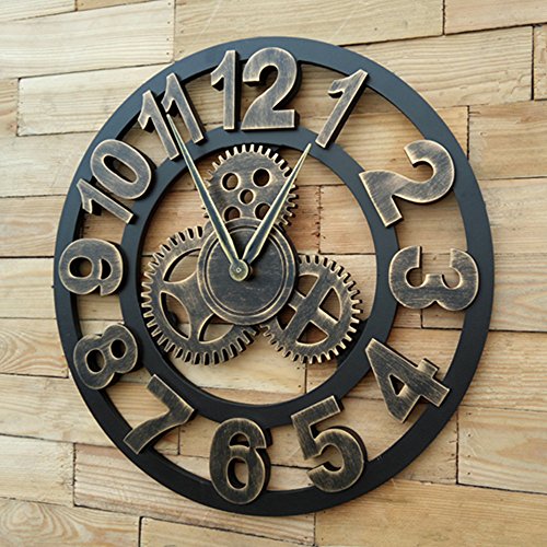 -. Title : MODE HOME 16" Big Vintage Wooden Wall Clock With Gear Decorative Wall Clocks Antique