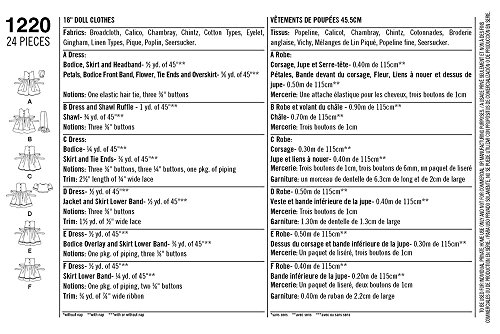 -. Binding : Misc. -. Brand : Simplicity Creative Patterns -. EAN : 0039363512202 -. Feature : Instructions are written in English, French and Spanish / Made in the USA / Available in sizes: OS (one size) -. IsAutographed : 0 -. Label : OUTLOOK GROUP CORP -. Manufacturer : OUTLOOK GROUP CORP -. Model : 1220 -. MPN : US1220OS -. PackageQuantity : 1 -. PartNumber : US1220OS -. ProductGroup : Art and Craft Supply -. ProductTypeName : HOME -. Publisher : OUTLOOK GROUP CORP -. ReleaseDate : 2015-01-31 -. Size : OS (ONE SIZE) -. Studio : OUTLOOK GROUP CORP -. Title : Simplicity Creative Patterns 1220 18-Inch Doll Clothes, OS (ONE SIZE) -. UPC : 039363512202