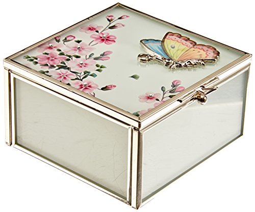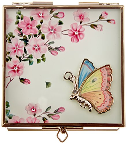 StealStreet SS-A-38136 Lovely Pink Butterfly and Flower Blossom Rectangular Jewelry Box