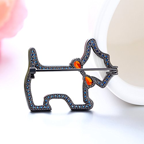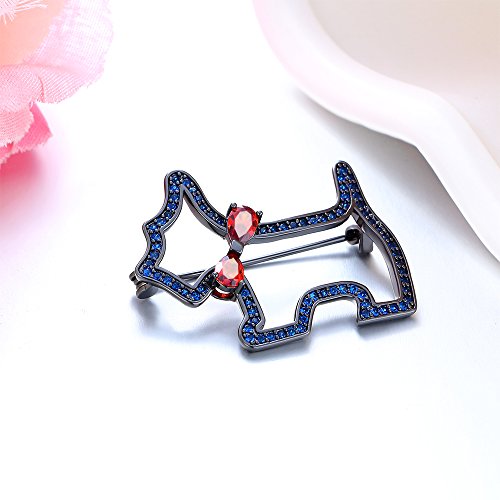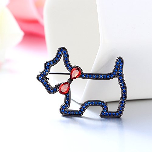 Lovely designed as a dog wearing ruby crystal inlaid tie, and studded with blue crystals alongside, this brooch is stylish and delicate. More suitable in informal occasions.