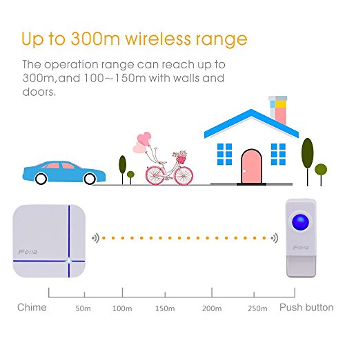 Great operating range: With over 900 feet range in open area. It can help you won't miss any important visitor. Doorbell can work within 900 feet in open and non-interference environment.