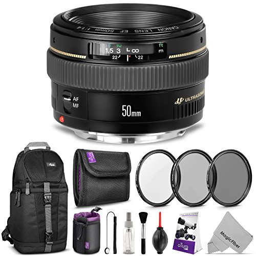 INCLUDES: Canon EF 50mm f/1.4 USM Standard & Medium Telephoto Lens + DSLR Sling Backpack + 58mm Altura Photo UV-CPL-ND4 Filter Kit + Medium Altura Photo Neoprene Lens Pouch + Lens Cap Keeper Holder + Altura Photo Cleaning Kit + MagicFiber Microfiber Cleaning Cloth.