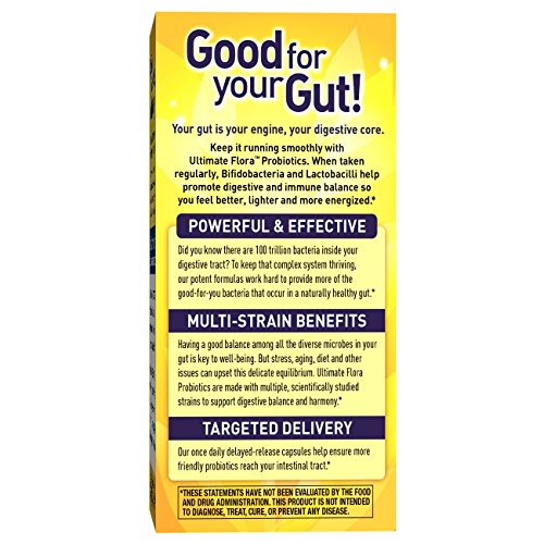 PROBIOTICS FOR ADULTS: Ultimate Flora Probiotic is designed with a potent formula of 10 probiotic strains to help restore digestive balance and promote digestive and immune health for adults*
