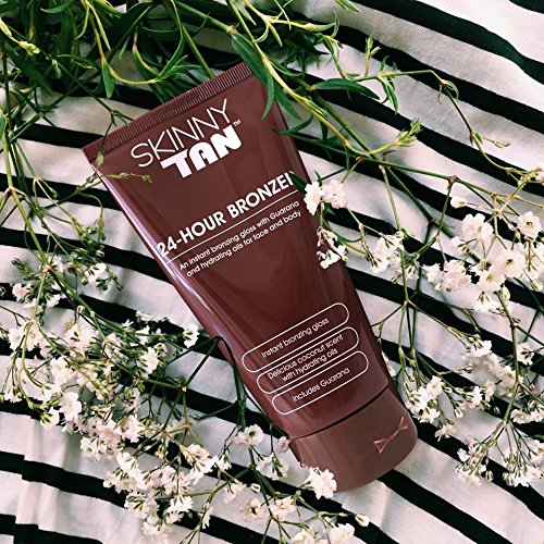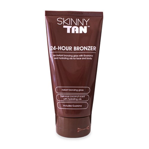 A beautiful bronze color gives an instant lift to pale, tired skin. It has a radiant gloss finish but no gimmicky sparkles or glitters. Like all of the Skinny Tan range, the 24 Hour Bronzer contains a natural cellulite firming ingredient (Guarana) to help improve the appearance of blemishes and imperfections.
