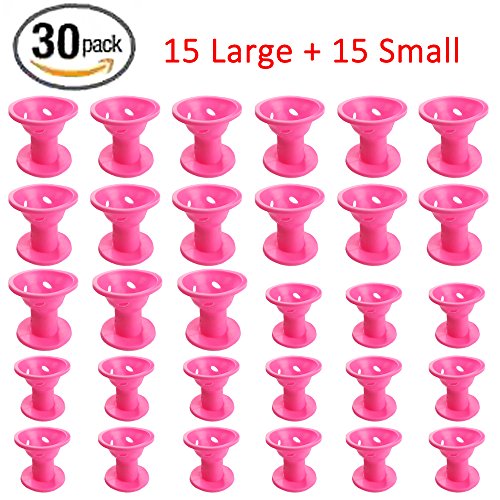- 【HIGH QUALITY SOFT SILICONE】 The material is high quality medical-grade soft silicone, hypoallergenic, odorless and non-slip. Package: 15pcs large hair curlers and 15pcs small hair curlers, color: pink as shown in the pics. Approximate size for large is 1.9" * 0.9", small is 1.6" * 0.8". It looks like really cute, and using convenient, will let you more attractive. What are you still waiting for? Then add it to your cart