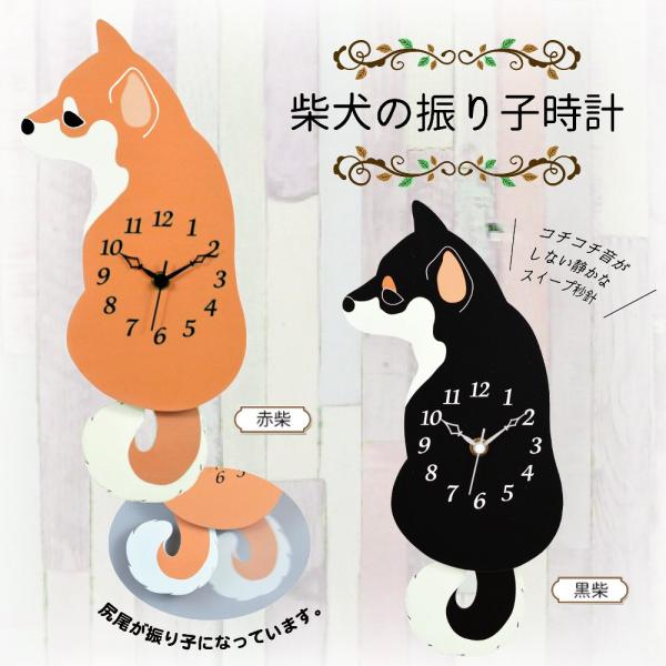 柴犬 振り子時計 うしろ向き 黒