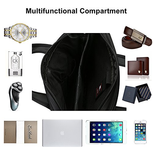 Volher Briefcase fits more 15.6 inches laptop, such as MacBook Pro/ Dell / HP / Toshiba / Lenovo / Acer. Suits for College students, Businessmen, Office staff, Teens, Students, Outdoor guys etc. Constructed of rugged 1680 Ballistic fabric Oxford Nylon Cloth for durability Wrapped bale handles for comfort Padded,removable shoulder strap adjusts for convenience Padded laptop compartment Style: Simple / Steady / Light Weight Features: Study / Business / Leisure / Travel Dimensions: 17.1 x 13.0 x 3.8 inches Weight: 1.88 lbs.
