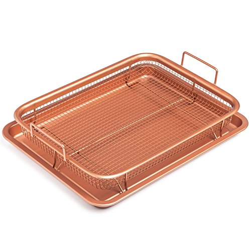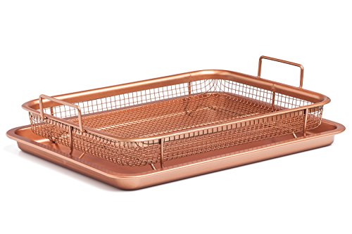 Studio : Chef's Star Publisher : Chef's Star Product Description *Make fabulous, crunchy on the outside soft on the inside, french fries, fried chicken, onion rings, fish, vegetables, pizza, mozzarella sticks and much more with the best texture possible. *Ideal for French Fries, Fried Chicken and other fried foods. *Turn your home oven into an Air Fryer. Fry your favorite food without oil and minimal grease for the most healthiest option for fried foods. *Lead a healthier life with lower cholesterol levels while still eating your favorite fried foods without giving up taste texture or quality. *The Copper Crisper tray allows for the grease to pass through the crisper to the bottom tray. *Copper Crisper Air Fry Pan is Flame Oven proof up to 500 Degrees, Can be utilized for Indoor Outdoor grilling use. *PTFE/ PFOA/ PFOS Free 0