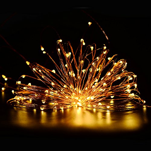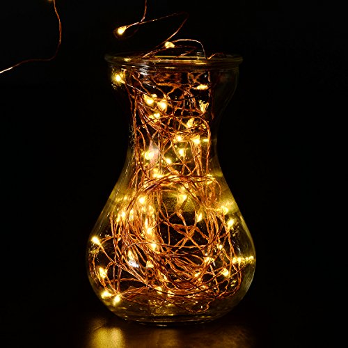 MENZO LED String Lights Copper Wire Lights, 16.4Ft 5-Meter 50leds Outdoor String Lights, Starry Décor Rope Lights AA Battery Powered Lights for Christmas Wedding Holiday and Party (Warm White)