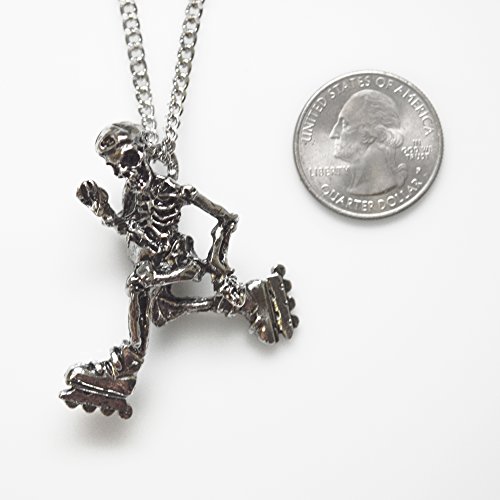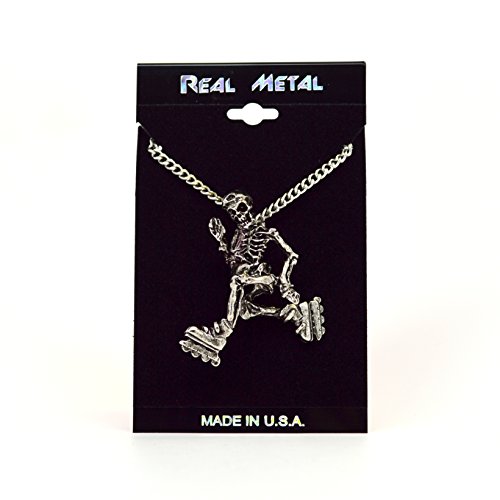 -. Binding : Jewelry -. Brand : Real Metal -. Department : womens -. EAN : 0803853004962 -. Feature : Cast in high grade pewter with an anti-tarnish finish / Silver antique finish / Pendant size is 1 3/4 inches long x 1 1/2 inches wide on 20 inch neck chain / Hand crafted and MADE IN USA -. Label : Real Metal Jewelry JPI Inc. -. Manufacturer : Real Metal Jewelry JPI Inc. -. Model : NK-155 -. MPN : NK-155 -. PartNumber : NK-155 -. ProductGroup : Jewelry -. ProductTypeName : FASHIONNECKLACEBRACELETANKLET -. Publisher : Real Metal Jewelry JPI Inc. -. Studio : Real Metal Jewelry JPI Inc. -. Title : Gothic Skeleton Cruising on Roller Blades Silver Finish Pendant Necklace -. UPC : 803853004962