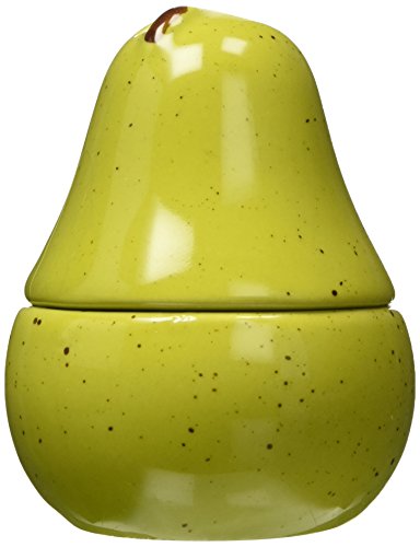 - Top half of pear-green, ceramic pear is a salt shaker and the bottom half is a pepper shaker