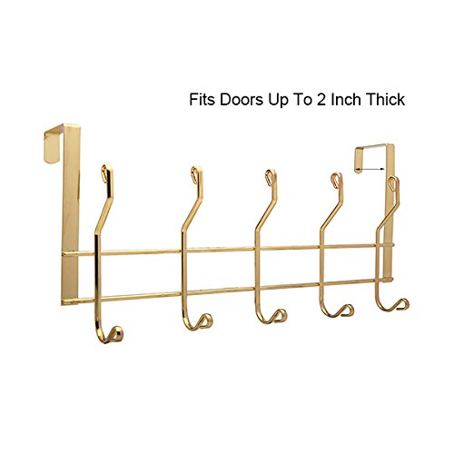 Ruiling 2 Pack Gold Over the Door Hooks, 10 Hanger Rack Organizer - for Home Office, Hanger Coats, Hats, Towels, More Use