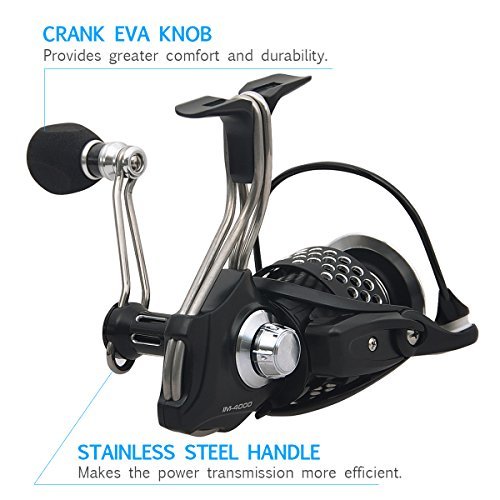 Steel Feeling 4000 | Weight 13.7oz / 388g | Max Drag 22.0LB /10KG | Gear Ratio 5.1:1 | Line Capacity 0.30mm / 195m 0.35mm / 145m 0.40mm / 110m