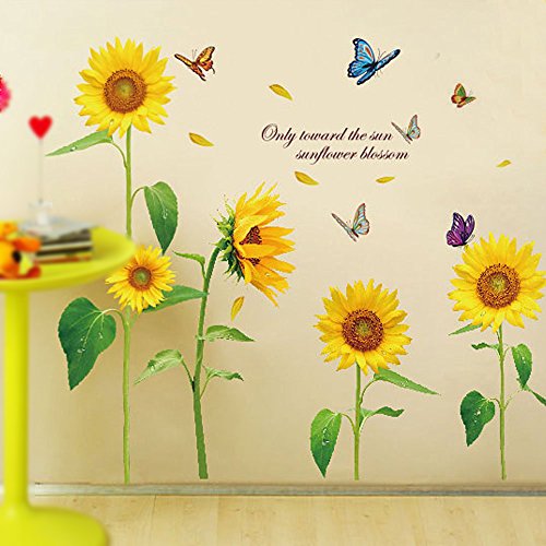 -. Title : SODIAL(R)Sunshine Sunflower Butterfly Dancing in Summer Beautiful Removable Wall Stickers DIY Kid's Child Room Decor Decal LM858 (90 60cm )