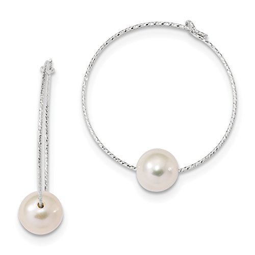 ICECARATS DESIGNER JEWELRY 925 STERLING SILVER RH 9MM WHITE ROUND FRESHWATER CULTURED PEARL HOOP EARRINGS EAR HOOPS SET FOR WOMEN
