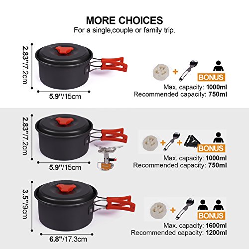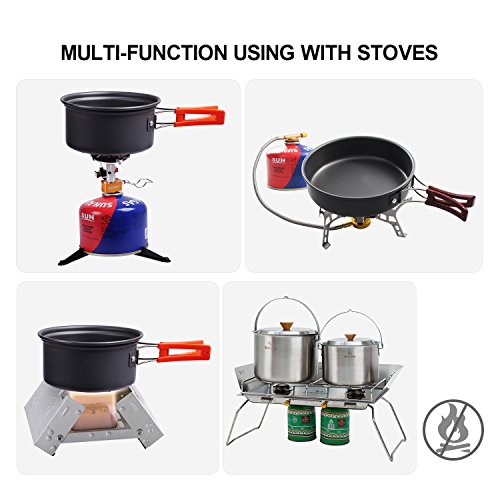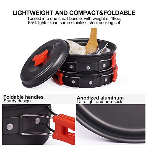 ✔ PERDECT FOR OUTDOOR ENTHUSIAST: Whether you're at a hiking, climbing or car camping, REDCAMP anodized aluminum camping cookware set for 1-2 person is the perfect partner to your outdoor survivals.