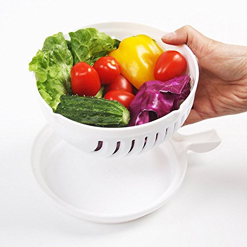 PRACTICAL & MULTIFUNCTION: The bowl can be used as a strainer, with which can wash your lettuce together, the pedestal can be used as a cut board, just sets them up for a perfect Cross cutting. Spin the strainer and slice your fruit or vegetable smaller.
