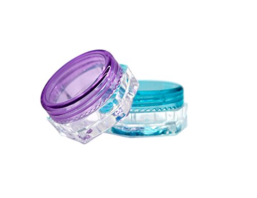 TOPWEL 3 Gram Refillable Regular Hexagon Plastic Screw Cap Lid with Clear Base Empty Plastic Container Jars for Nail Powder Bottles Eye Shadow...