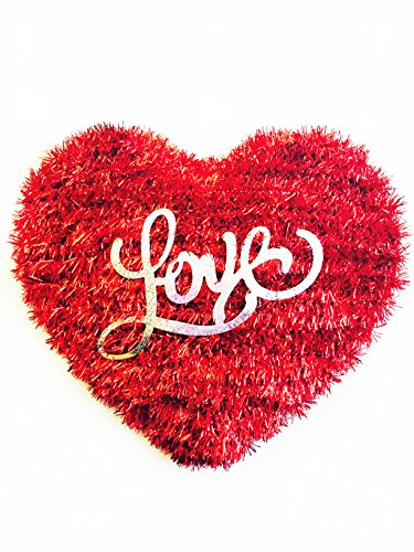 Valentine's Day Red Tinsel "Love" Heart Decoration