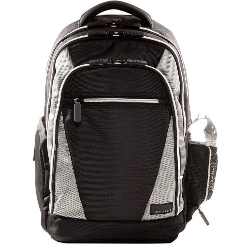 Studio : Eco Style Publisher : Eco Style Binding : Personal Computers Product Description Sports Voyage backpack is stylish and feature rich and will accommodate up to a 16.4” laptop. Front workstation includes: key fob, business card holder, cell phone pocket, pen/pencil holders and a zippered mesh pocket to protect your valuables. Second large compartment will accommodate an extra set of clothes or a secondary device such as a laptop, portable printer, gaming device, books and files. The dedicated laptop compartment has great protection along with a zippered mesh pocket on the opposite wall conveniently placed for the power adapter and additional accessories. Additional pockets for your multimedia device with a headphone pass thru, retractable water bottle holder along with an additional exterior side pocket for your sunglasses/accessories. Ergonomic shoulder straps and extreme padding makes this backpack ideal to carry around all day in style and comfort. 0