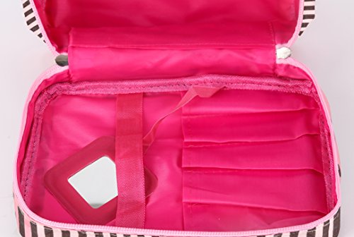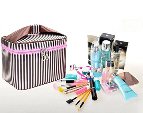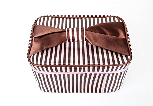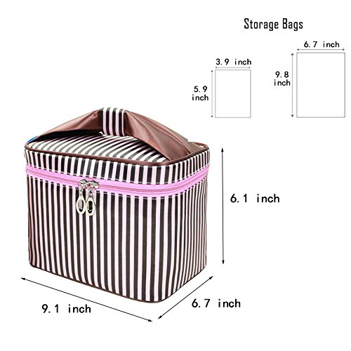 InfiniteB Toiletry Bag with Mirror Multifunctional Waterproof Cosmetic Makeup Bag Portable Travel Organizer with 2 Packing Bag (Coffee Stripe)