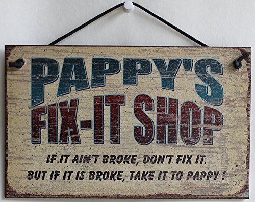 5X8 FIX-IT SHOP Sign Saying, "PAPPY'S FIX-IT SHOP IF IT AIN'T BROKE, DON'T FIX IT. BUT IF IT IS BROKE, TAKE IT TO PAPPY! " Decorative Fun Universal Household Signs from Egbert's Treasures