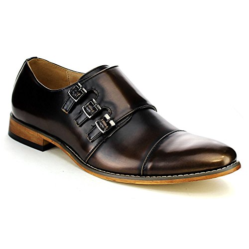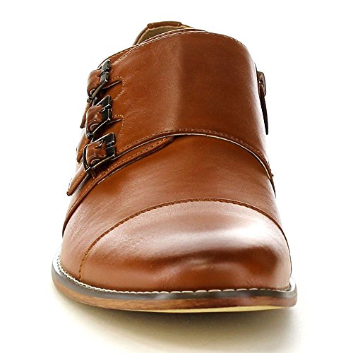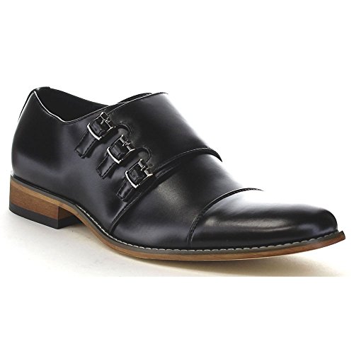 Product Description These classic dress shoes are featuring a cap toe, faux leather upper with triple monk strap for added style, smooth leather lining, low stacked heel. Perfect for daily dressing up, and suitable for any season.It runs big, suggest order half size smaller 0