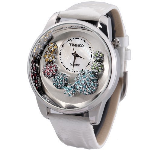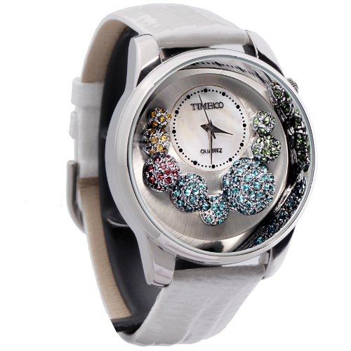 -. Title : Time100 Women Fashion Pattern Genuine Leather Band Diamond Quartz Movement Watch #W50080L.01A