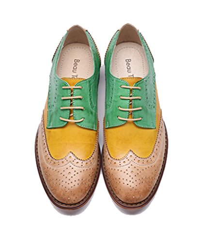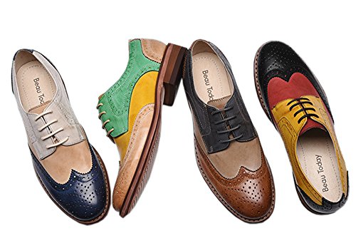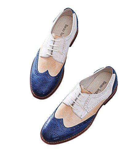 Product DescriptionU-lite Women's Perforated Lace-up Wingtip multicolor Leather Flat Oxfords Vintage Oxford Shoes0