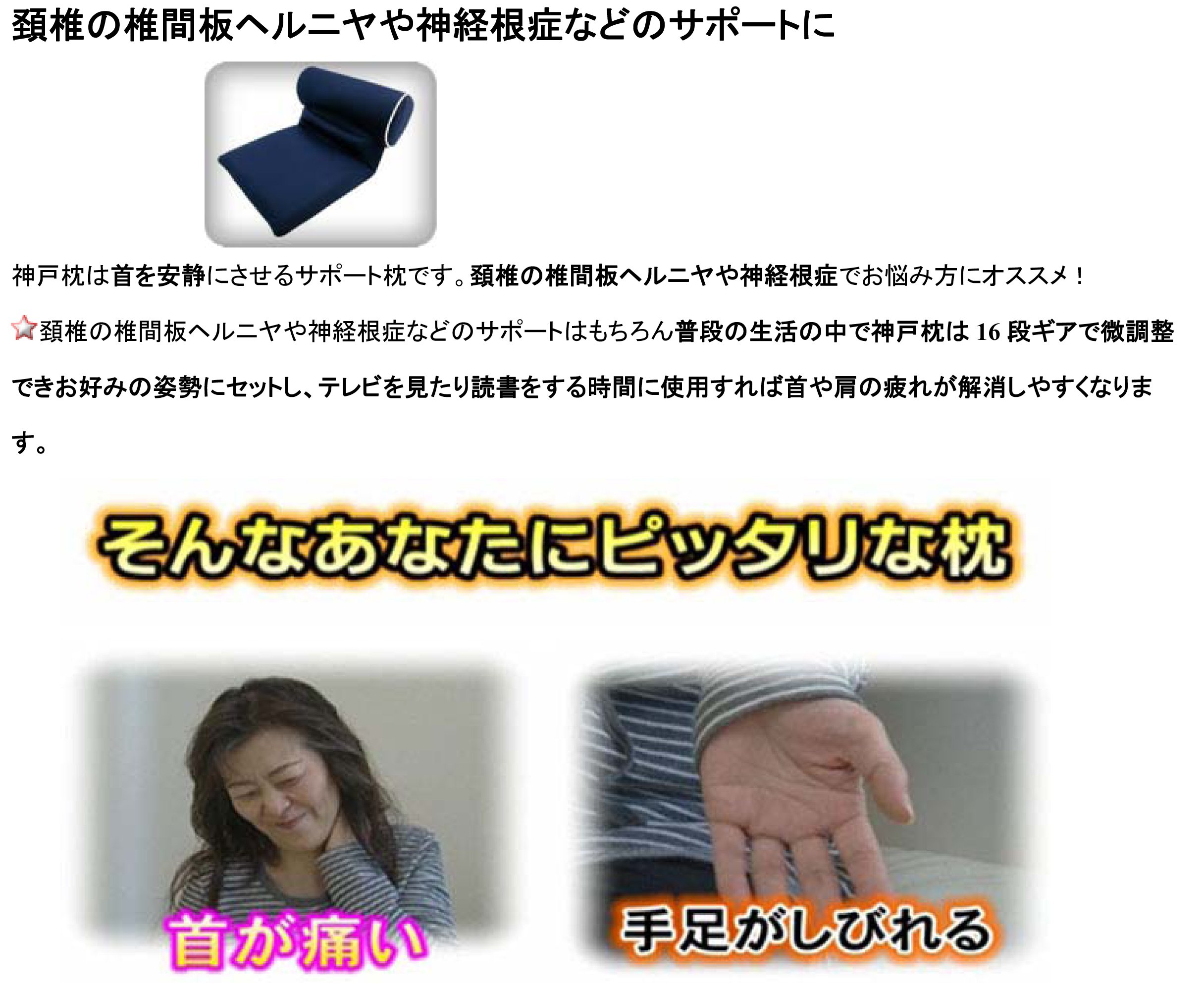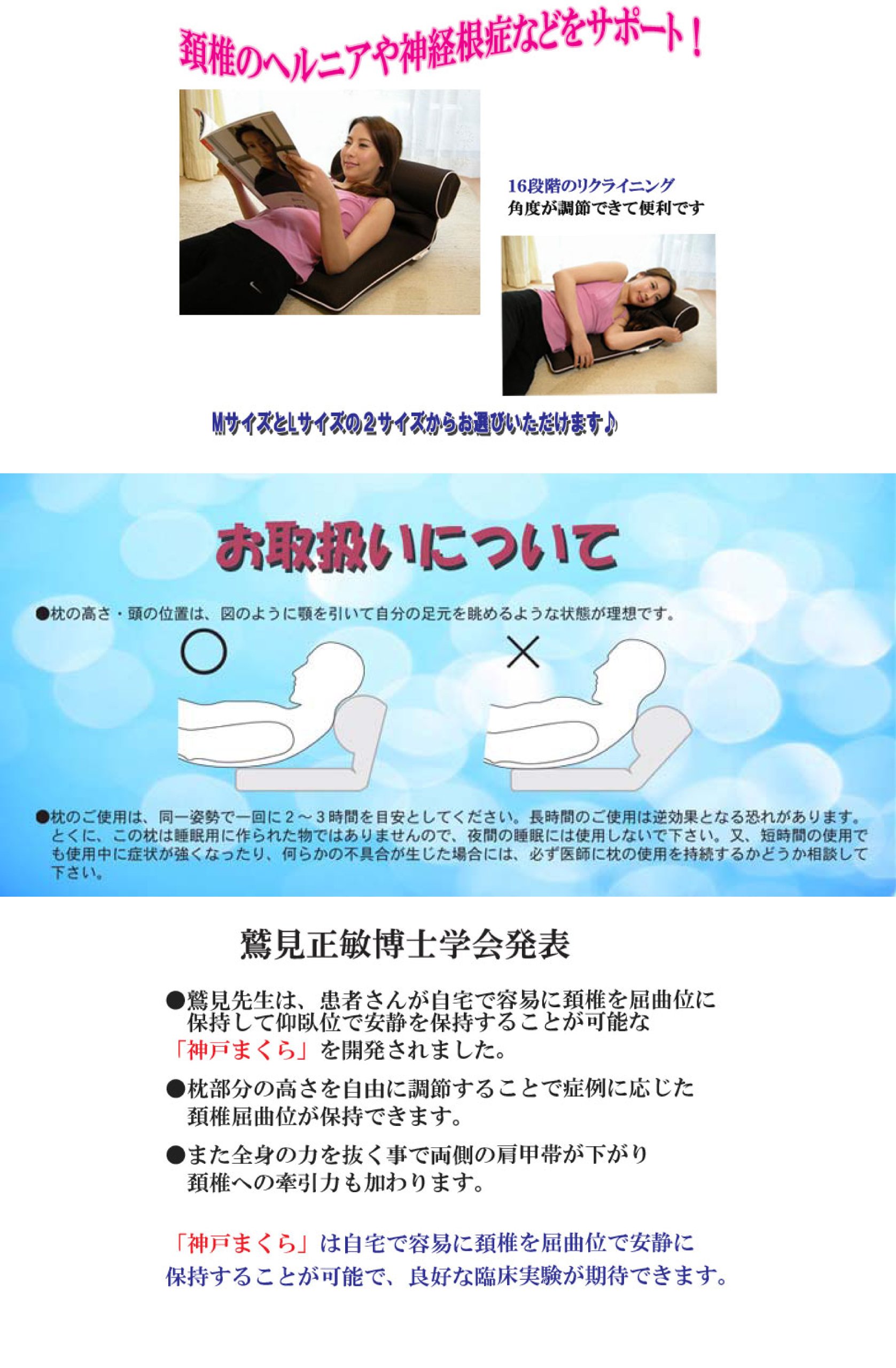 Kobe pillar / Product name] Kobe Pillow M [Product Description] · The angle of the pillow can be finely adjusted with a 16-stage gear · Support in support of spinal disc hernia and radiculopathy of the cervical vertebra in sleeping and TV pillows in the room