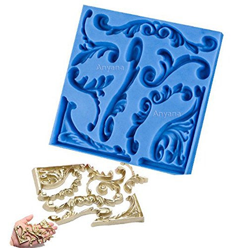 Anyana Baroque Vintage Scroll sculpted 3d Retro Palace Lace mould cake Fondant gum paste mold for Sugar paste gumpaste designer cupcake decorating topper decoration sugarcraft decor
