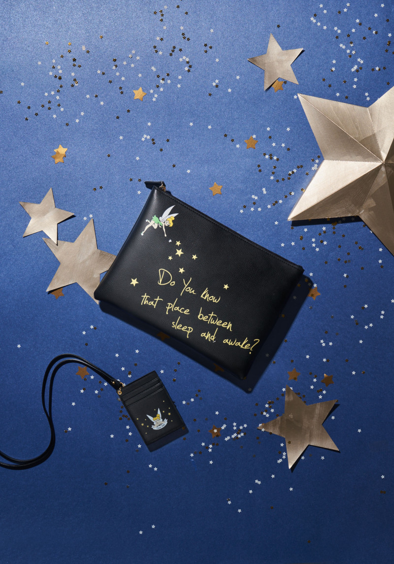 팅커벨 캐릭터를 모티브로한 프린트로 유니크한 외관을 연출한 클러치백입니다.