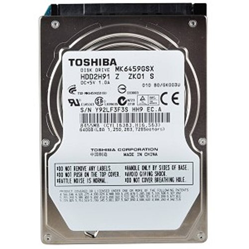 -. Feature : Toshiba MK6459GSX 640 GB SATA/300 2.5-inch Hard Drive General Features: 640 GB storage capacity / SATA/300 interface 5400 RPM spindle speed 8 MB buffer Average Seek Time: 12 ms / Number of data heads: 4 Number of disks: 2 Average latency: 5.55 ms / Transfer rate to host: 3.0 Gb/s 2.5-inch form factor 9.5 mm drive height Power Specifications: / +5V ( 5%)