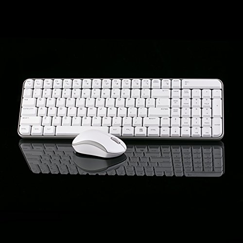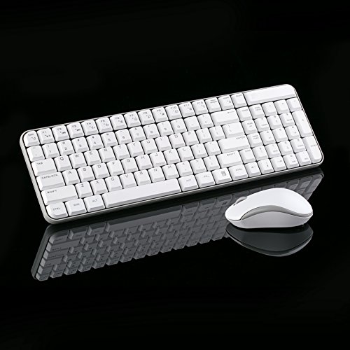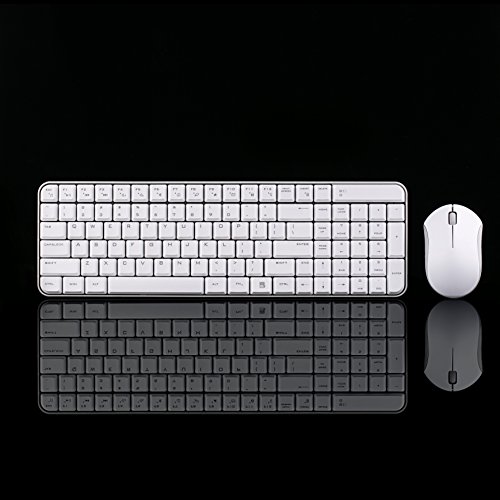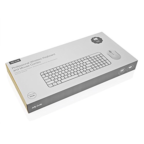 Jelly Comb MK08 [Whisper Quiet] Ultra Compact Wireless Keyboard and Mouse Combo Set for Windows and Android, Battery Operated, 2 AA Batteries Needed(Not Included),Silver+White