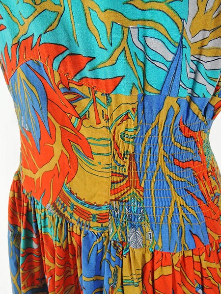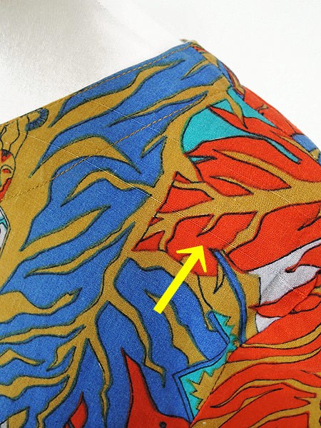 素材表記なし、コットンのような質感です。裏地無し。前両肩付近など数カ所に横糸ツレ感あり。前右肩下付近、後ウェスト付近、右裾付近に汚れあり。