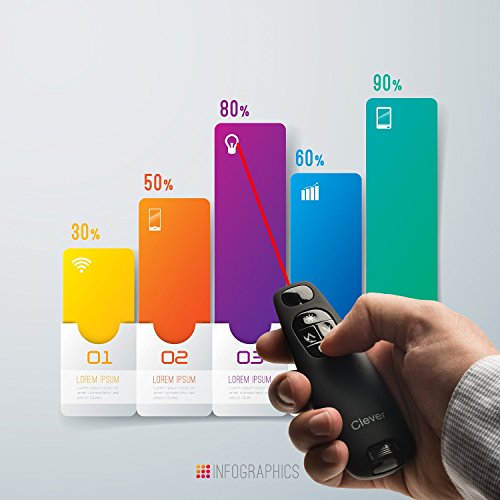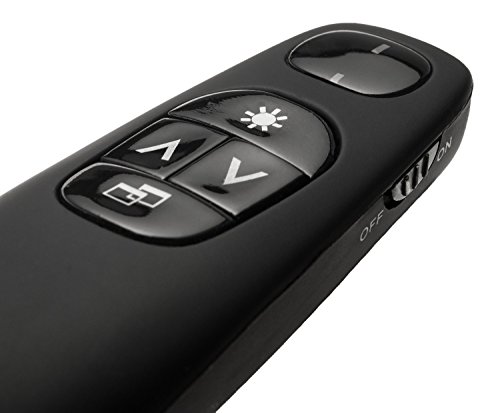 From the Manufacturer, The Clever Wireless Presenter C748, with a red laser pointer, is designed to help you make your point in a smaller meeting room setting, and is easy to see against most backgrounds and projection surfaces. A battery power indicator ensures you always have the power you need to finish your presentation, while a range of up to 50 feet (15 meters) lets you move around the room for more engagement with your audience. The intuitive slideshow controls help you find buttons easily by touch, and the compact design allows you to take it with you wherever you go. Plus the contoured shape feels great in your hand, so you'll be comfortable no matter how long the presentation lasts.