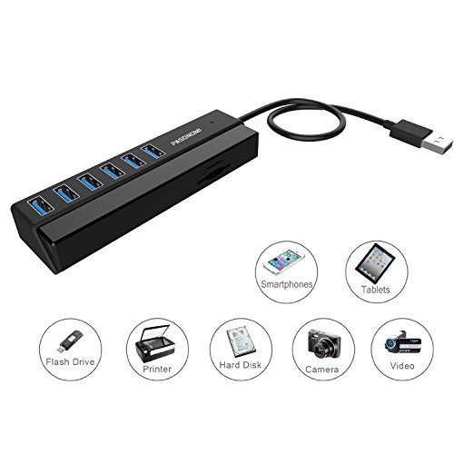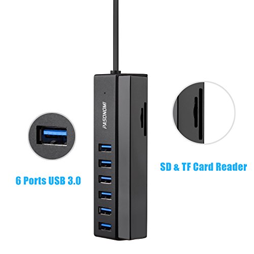 Pasonomi® High speed 6-Port Portable USB 3.0 Hub with SD & TF Card Reader For Macbook, Surface Pro, PC, Laptop (6-Port USB 3.0) B0177U634W