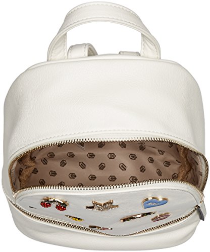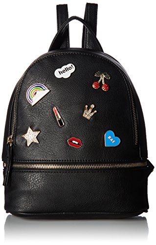 Ladies small backpack with non removable pins. Top zip closure. One main compartment with inner pocket