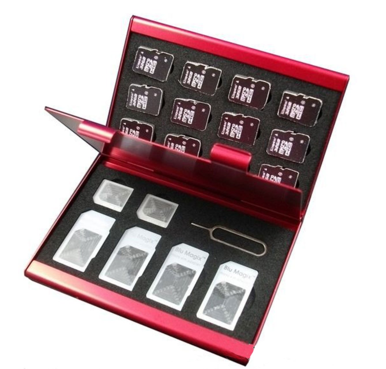 Available contents: Standard SIM x 4, microSIM x 2, microSD x 12, SIM ejector pin x 1